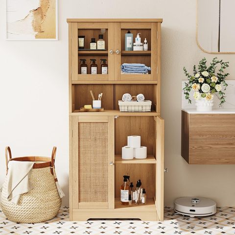 बहु-दराज बोहेमियन प्राकृतिक रतन रसोई भंडारण कैबिनेट ग्लास दरवाजा बड़े क्षमता वाले बाथरूम फर्नीचर के साथ